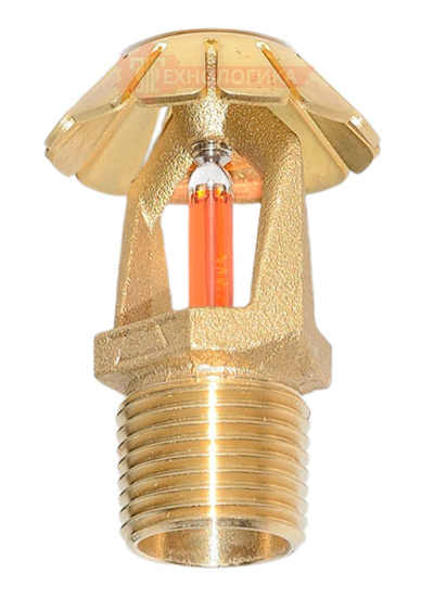 Спринклер(ороситель) СВВ-К160 бронзового цвета розеткой вверх.Назначение - разбрызгивание и распределение воды по площади возгорания с целью тушения и локализации